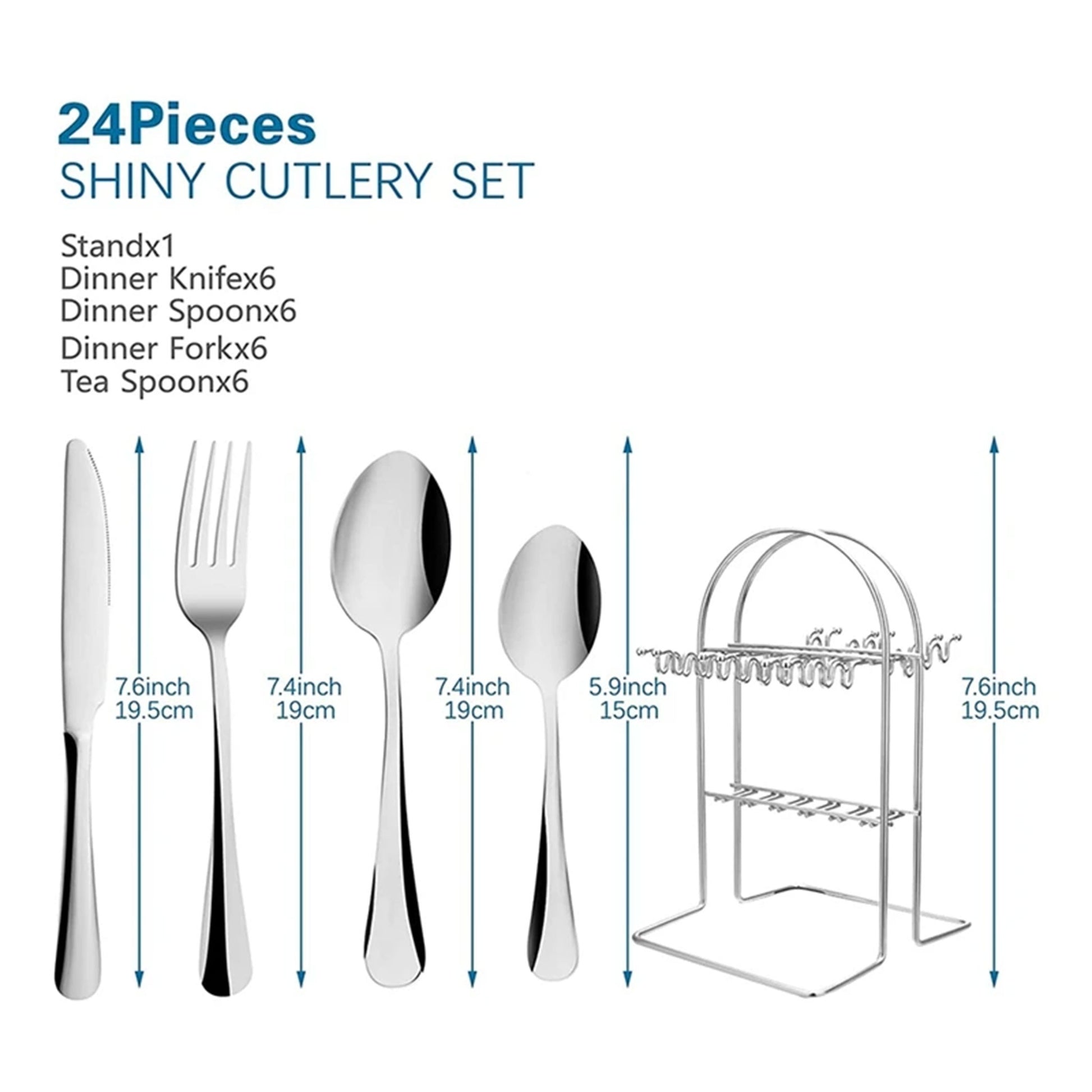 24-Piece Stainless Steel Silverware Set with Stand – Knife, Fork & Spoon