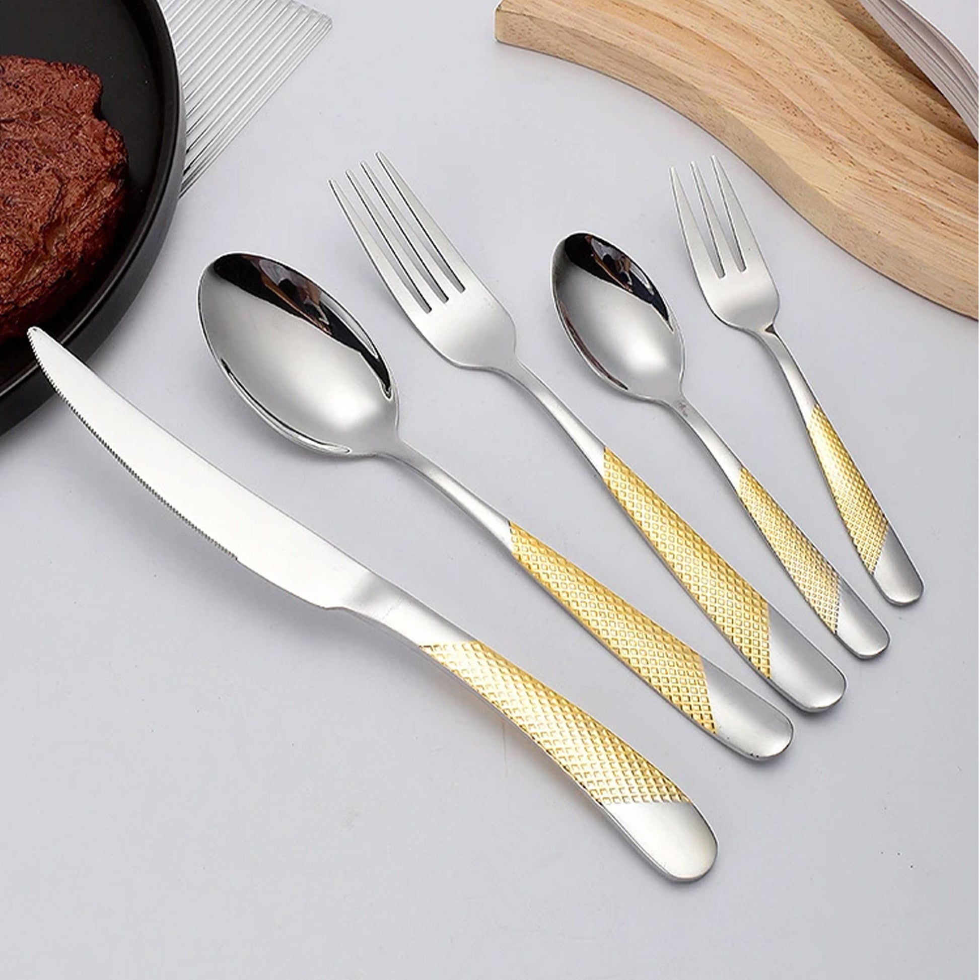 5-Piece Luxury Gold Stainless Steel Cutlery Set – Fork, Spoon & Knife