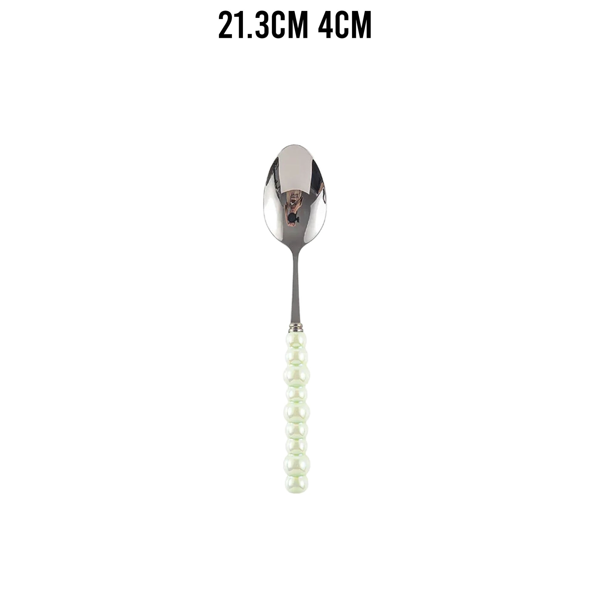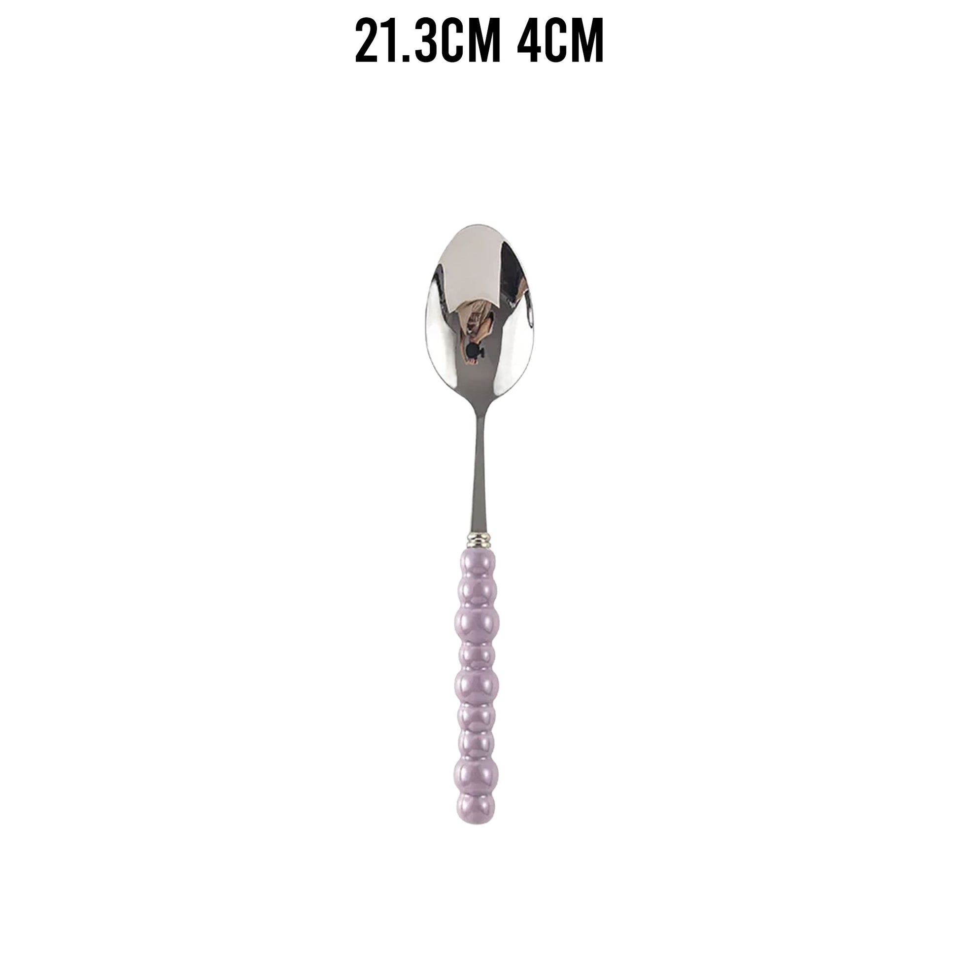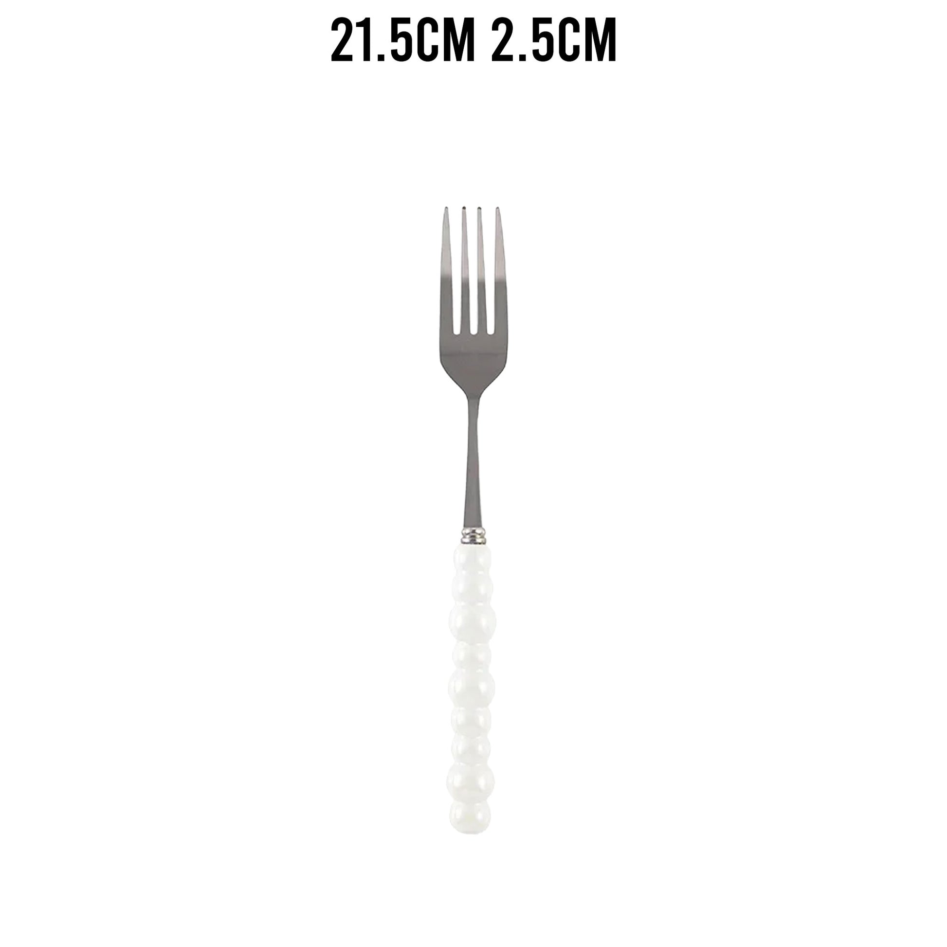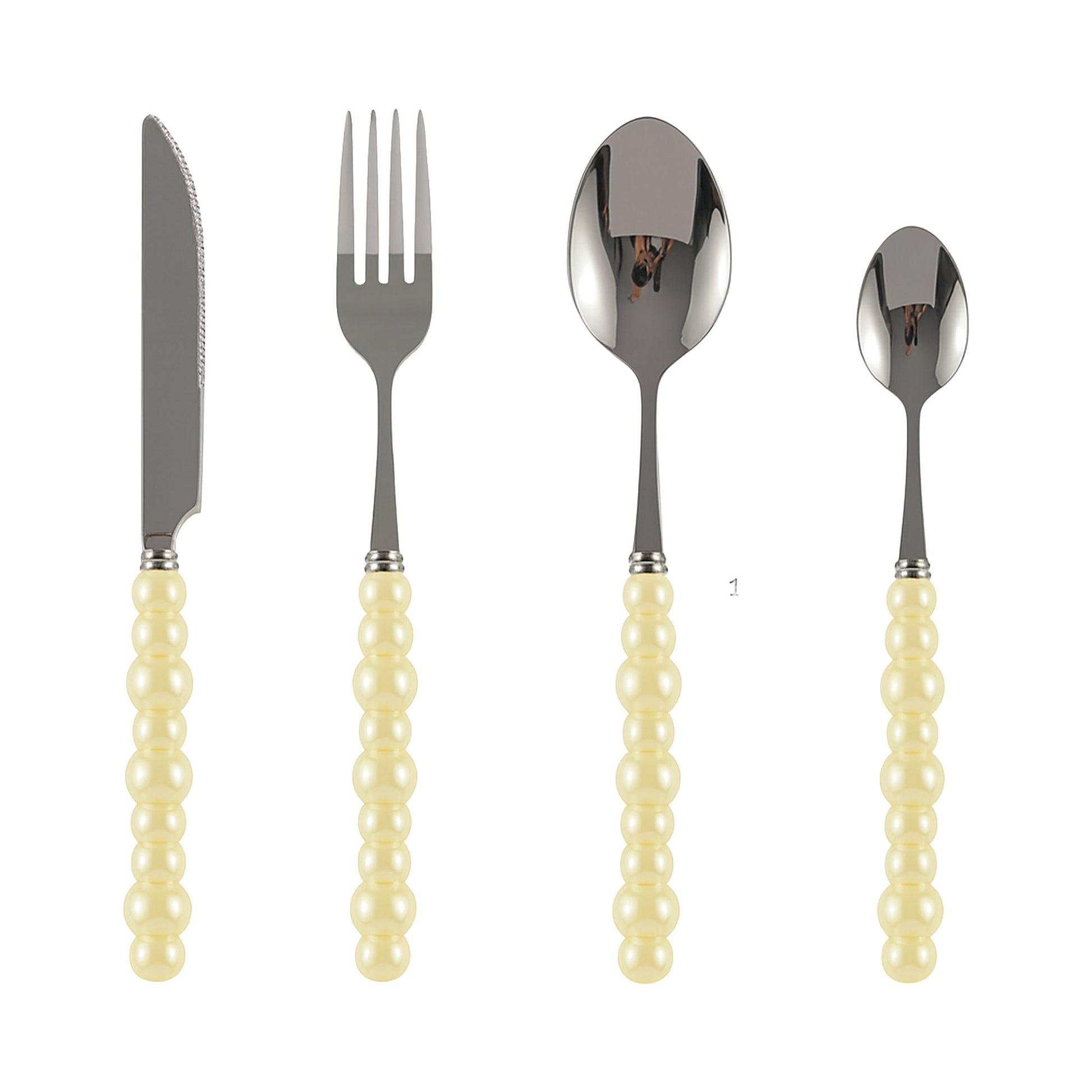 The highlight of this cutlery set lies in its pearl-like ceramic handles, which exude charm and sophistication. Unlike ordinary flatware, these handles are designed with a bead-like pattern that reflects light beautifully, giving each piece a decorative touch. The soft pearl sheen complements both modern and classic table settings, making it ideal for formal dinners, celebrations, weddings, or even adding elegance to your daily meals.