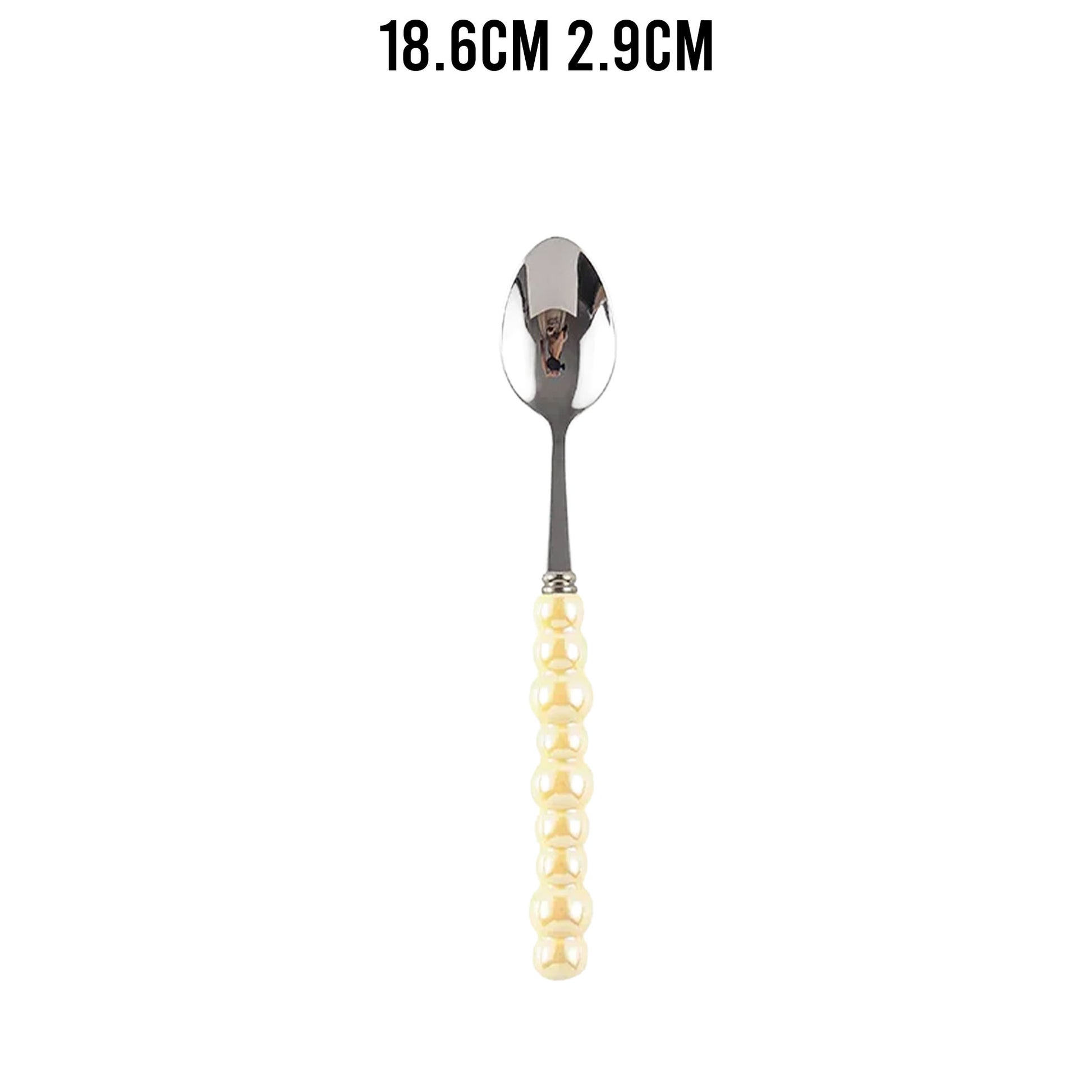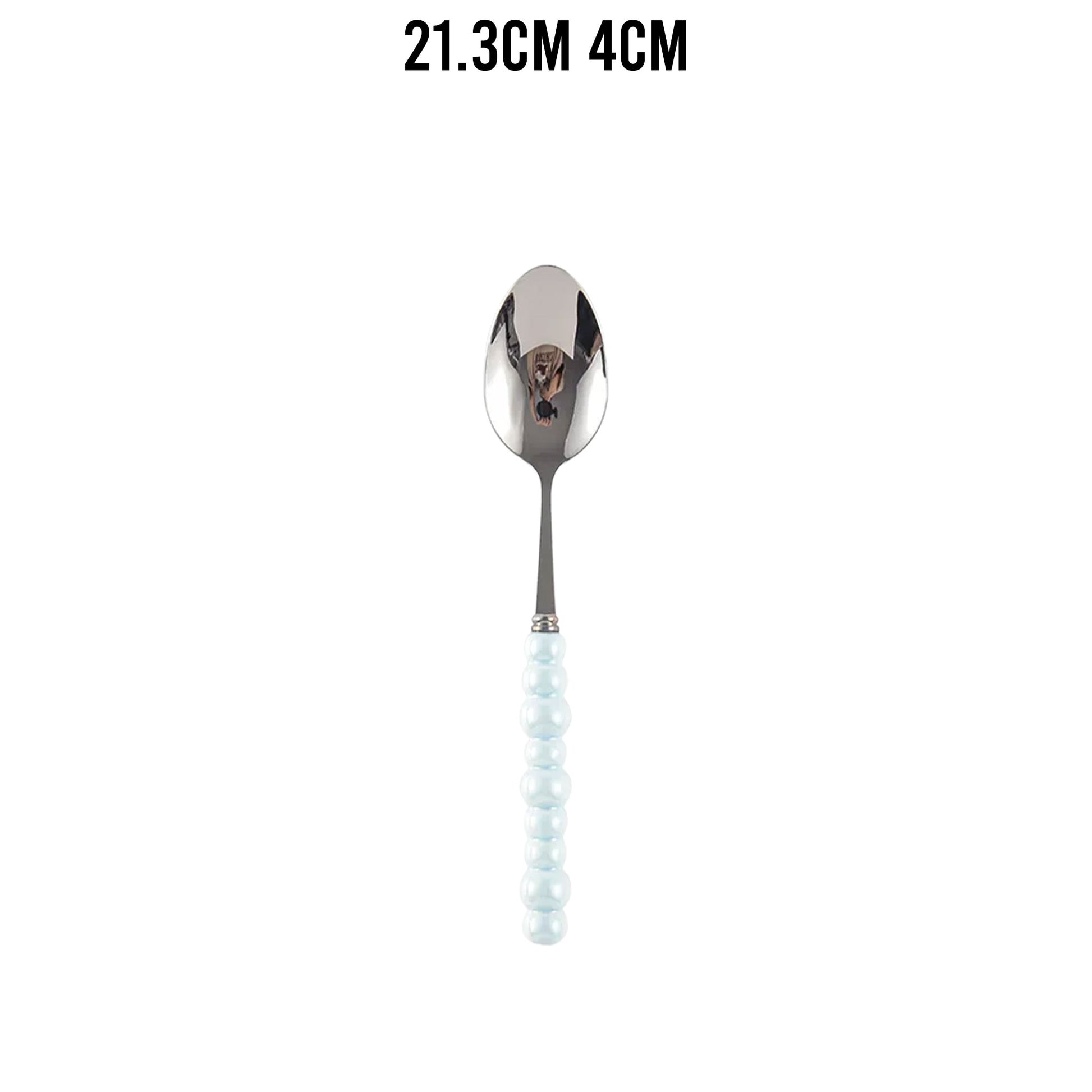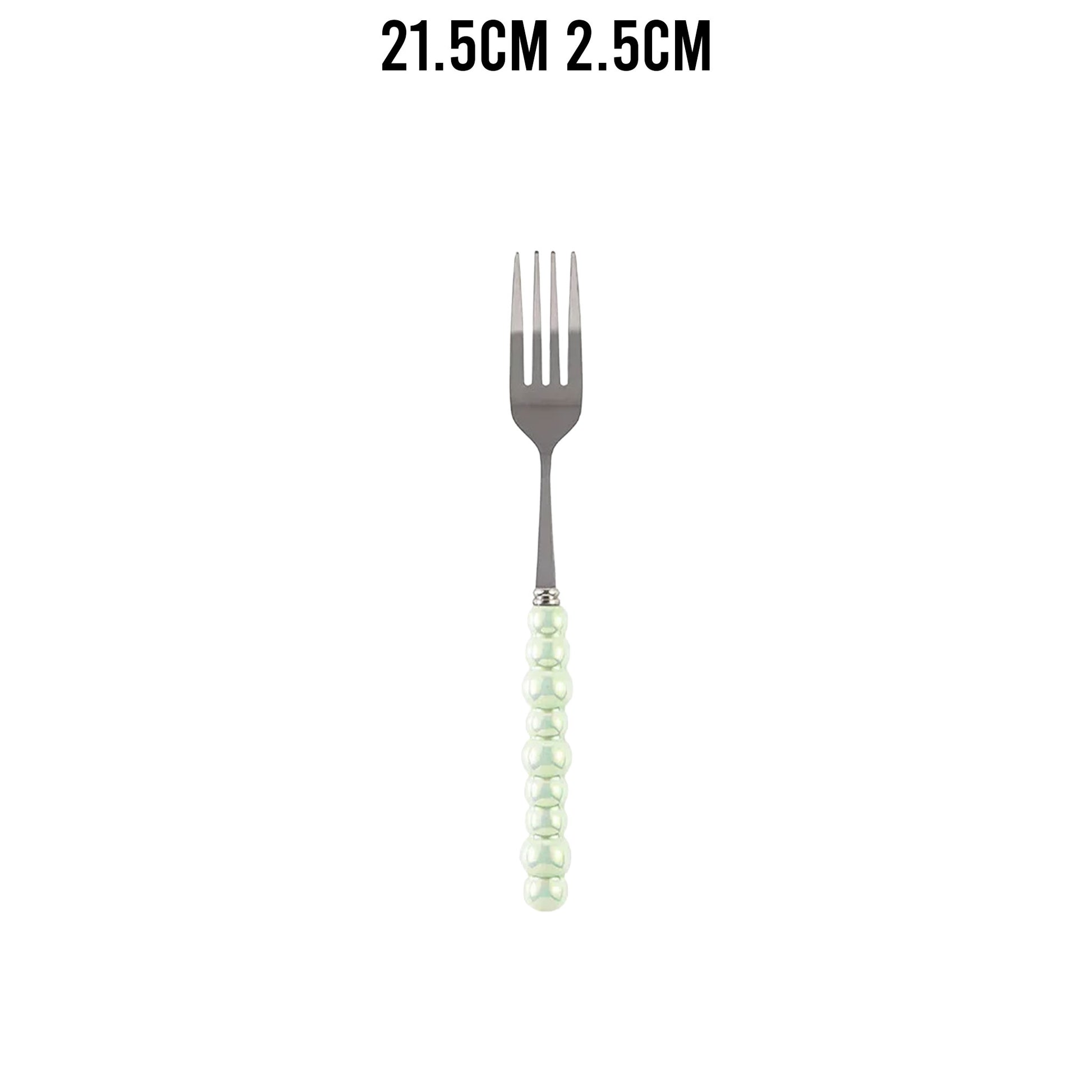 The highlight of this cutlery set lies in its pearl-like ceramic handles, which exude charm and sophistication. Unlike ordinary flatware, these handles are designed with a bead-like pattern that reflects light beautifully, giving each piece a decorative touch. The soft pearl sheen complements both modern and classic table settings, making it ideal for formal dinners, celebrations, weddings, or even adding elegance to your daily meals.