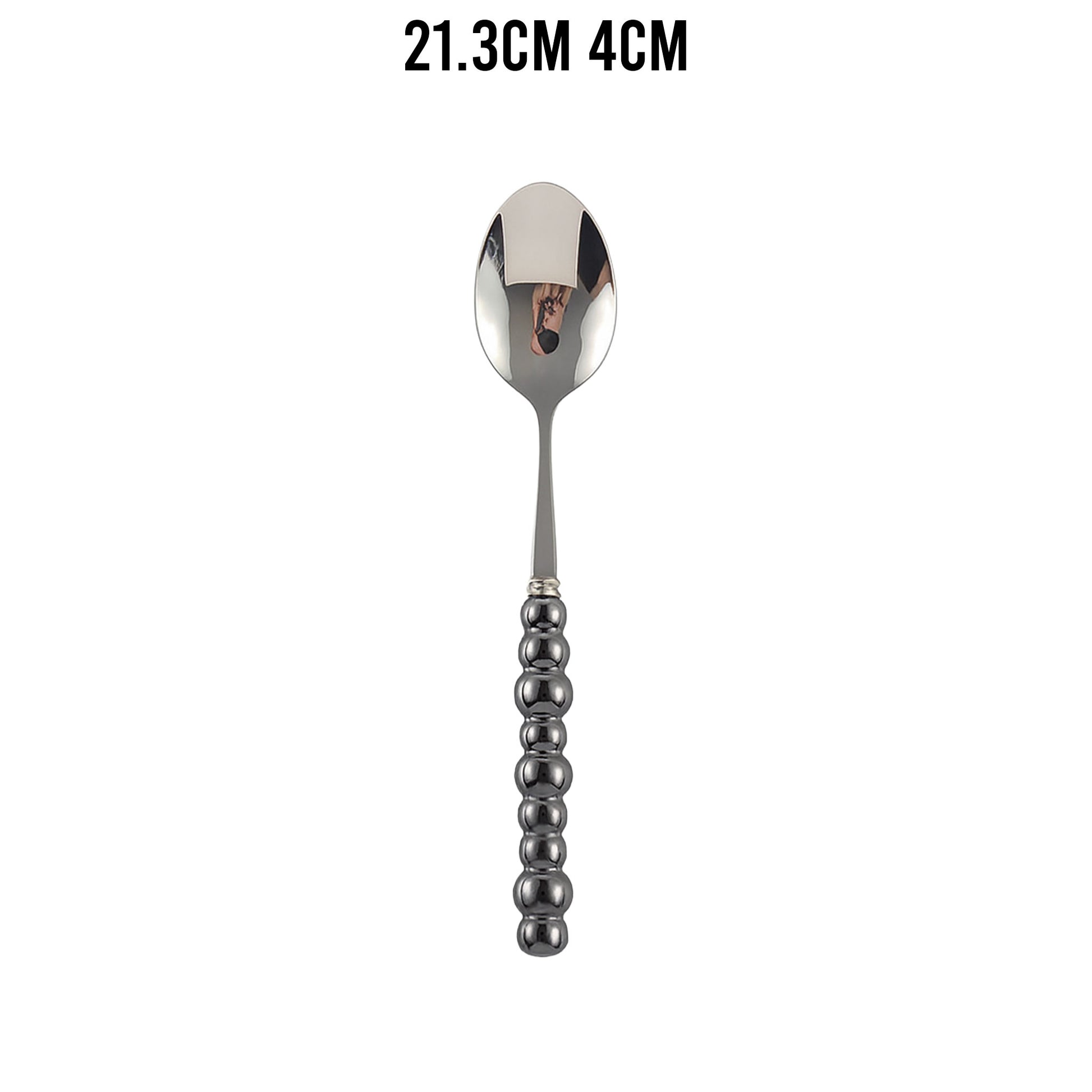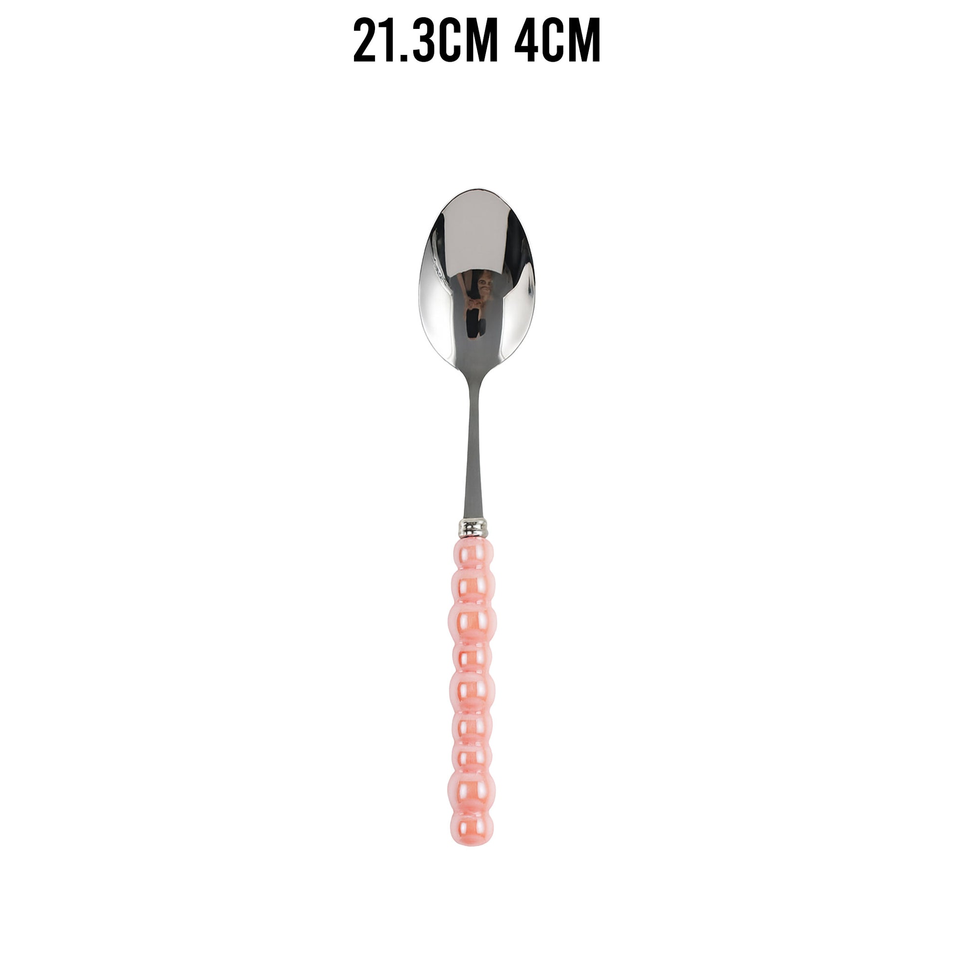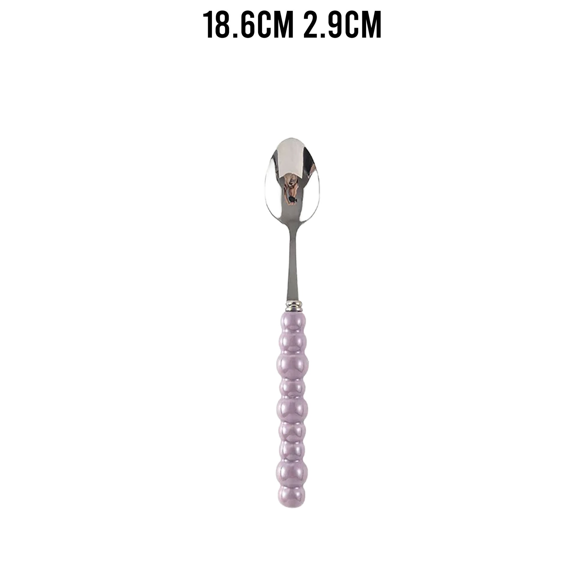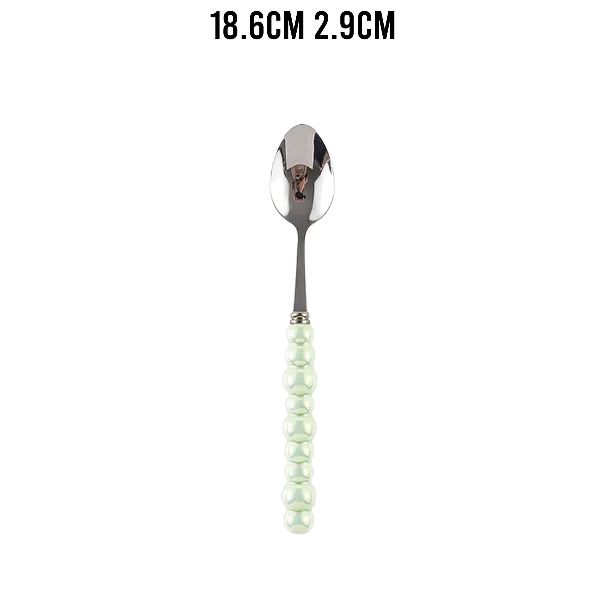 The highlight of this cutlery set lies in its pearl-like ceramic handles, which exude charm and sophistication. Unlike ordinary flatware, these handles are designed with a bead-like pattern that reflects light beautifully, giving each piece a decorative touch. The soft pearl sheen complements both modern and classic table settings, making it ideal for formal dinners, celebrations, weddings, or even adding elegance to your daily meals.
