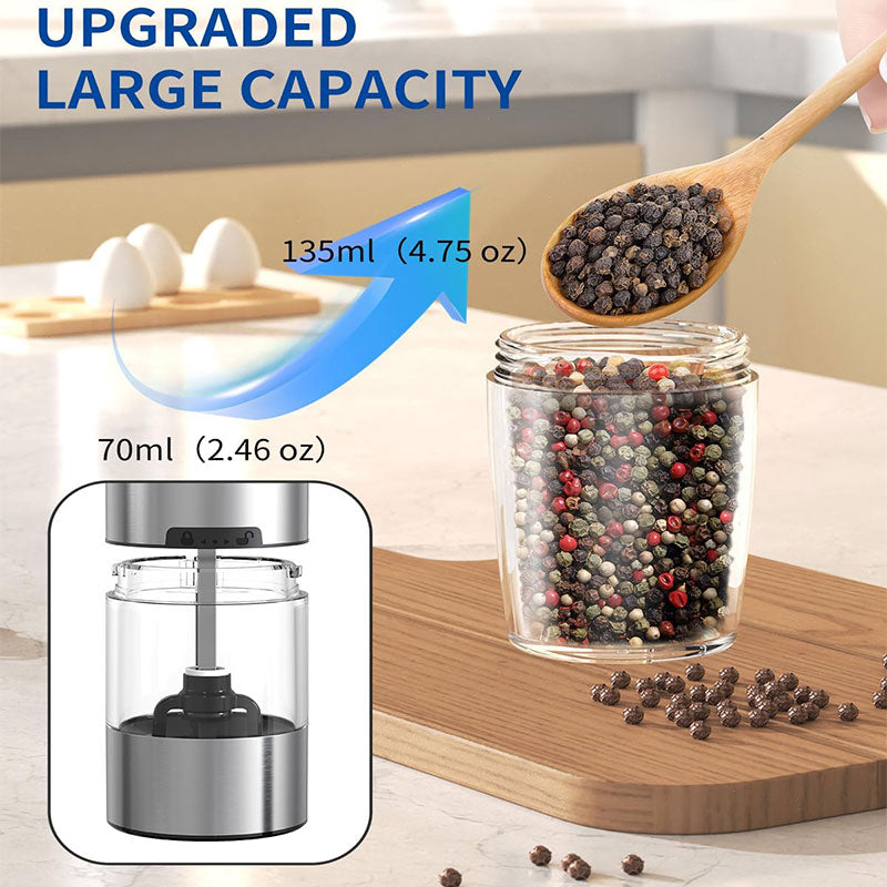 The Electric Gravity Pepper & Salt Grinder brings convenience, precision, and style to your kitchen. Designed with gravity-sensing technology, it automatically grinds spices when tilted, offering effortless one-handed operation. The adjustable ceramic grinding core delivers consistent results, allowing you to choose from coarse to fine textures. Its LED light illuminates your food for accurate seasoning, while the durable, transparent container makes refilling easy. Perfect for pepper, salt, herbs, and spice blends, this grinder enhances flavor while keeping your cooking smooth and efficient.