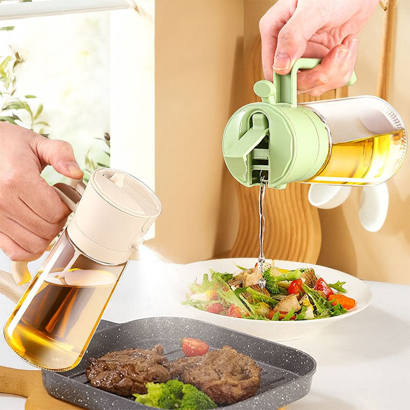 The Glass Oil Storage & Spray Pot is a smart, multifunctional kitchen essential designed for clean, precise, and efficient cooking. Its transparent, food-grade glass body allows you to clearly monitor oil levels while maintaining freshness and purity. With its dual-function design, you can choose between a fine mist spray for air-frying and grilling, or a smooth pour for dressing, sautéing, and marinating. The leak-proof lid, ergonomic handle, and easy-press nozzle ensure comfort and control in every use. Stylish, durable, and reusable, it reduces oil waste and brings convenience to everyday meal prep.