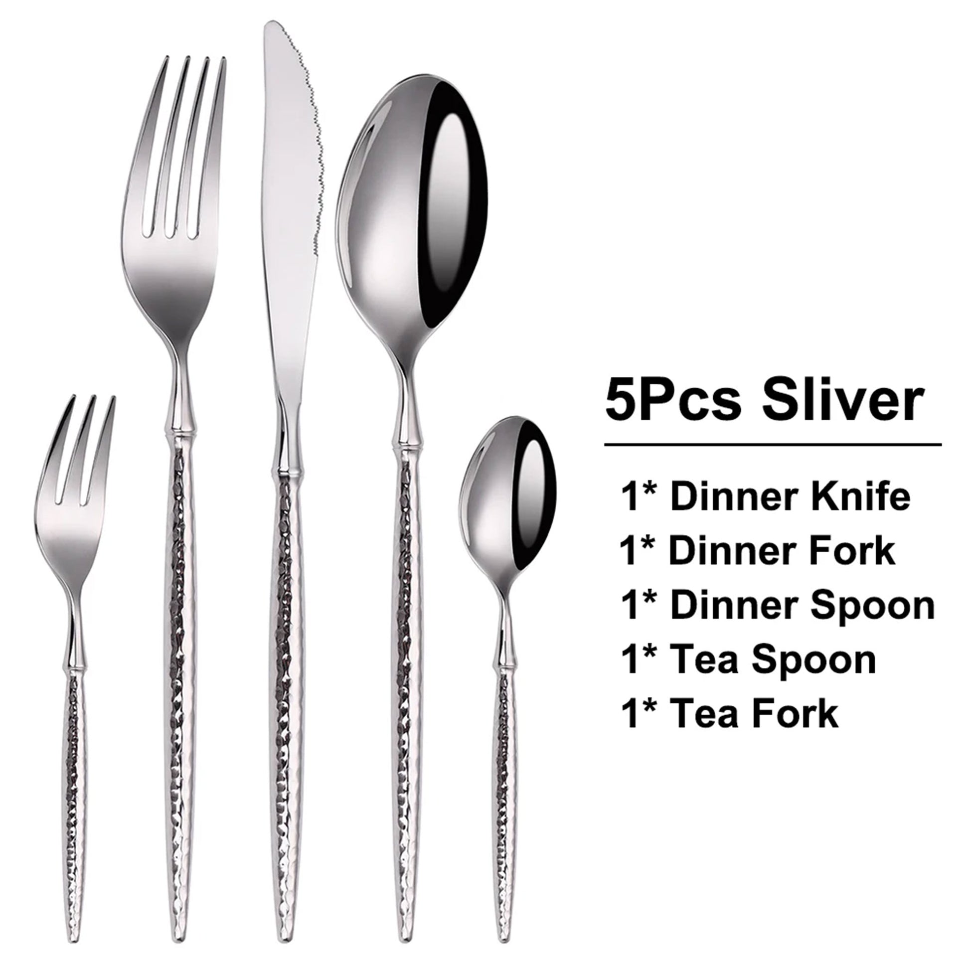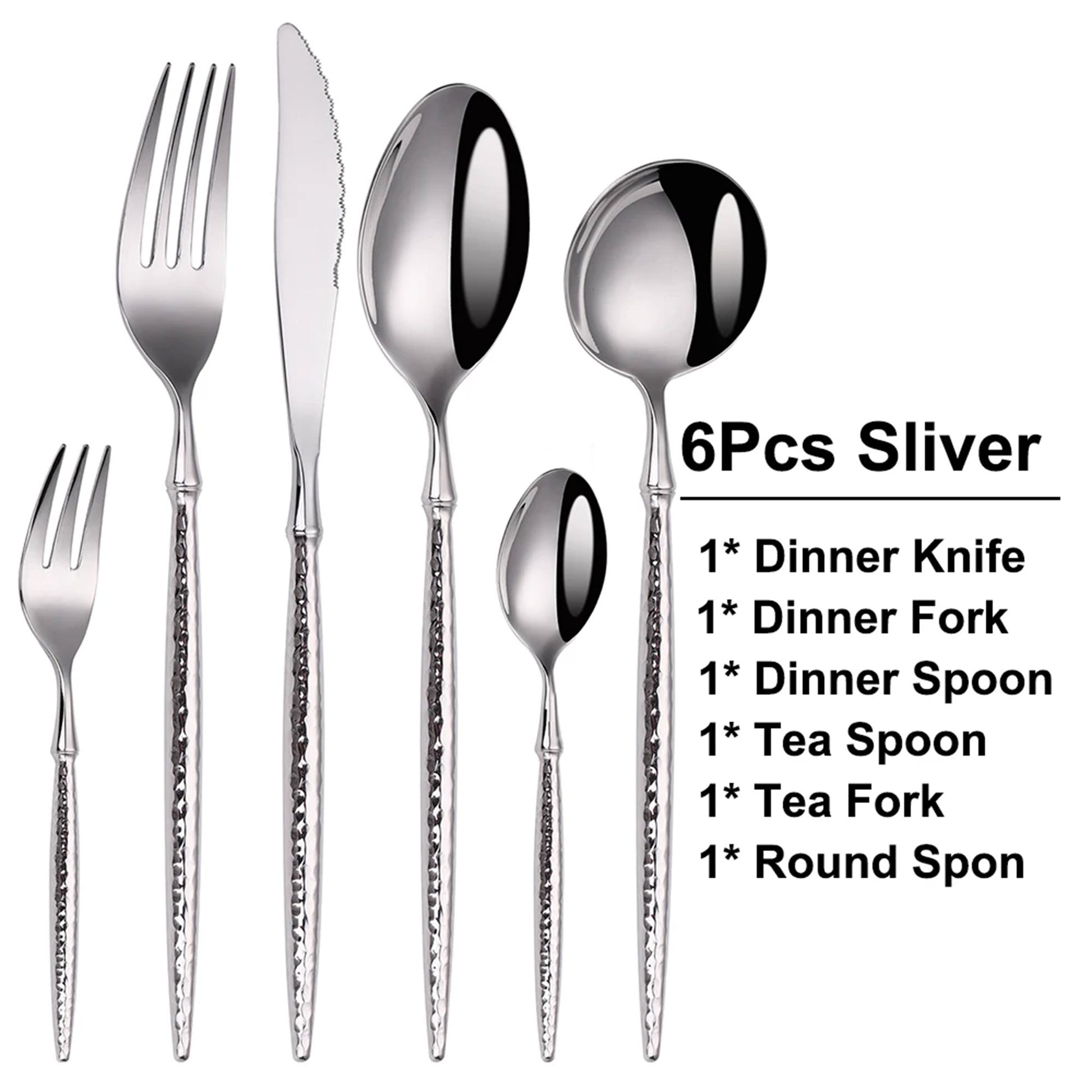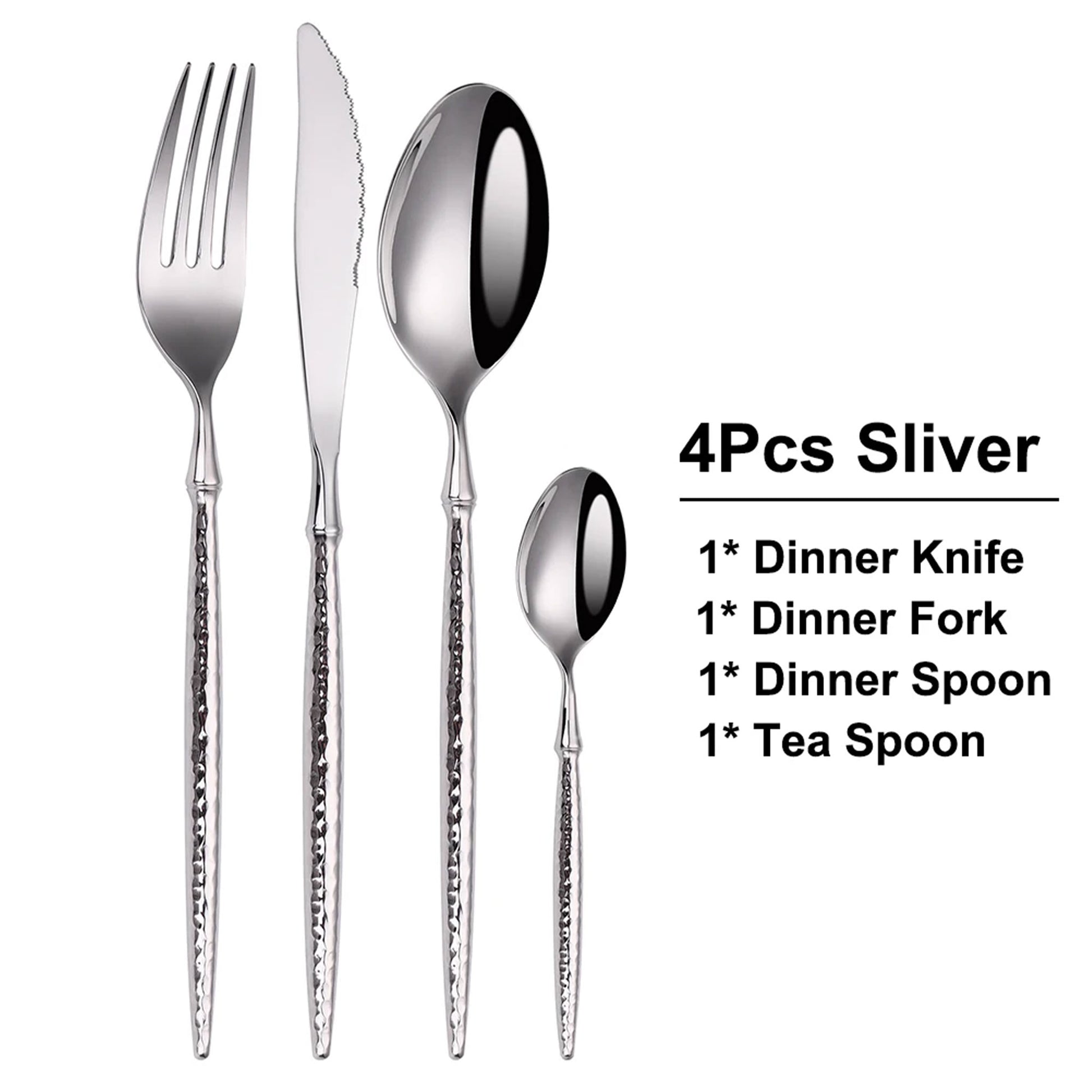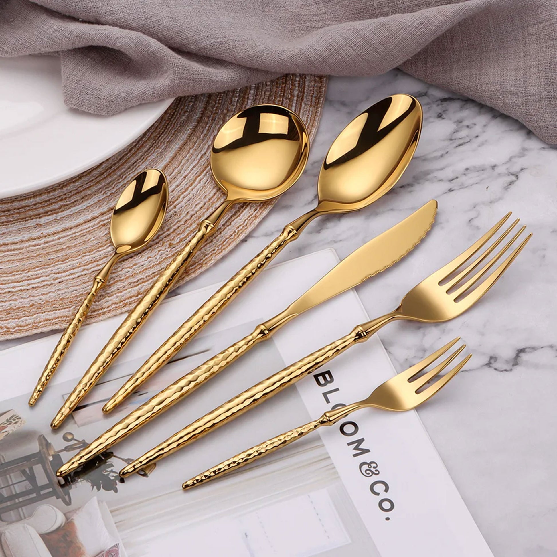 Gold & Silver Stainless Steel Cutlery Set – 16/20/24pcs Hammered Handle