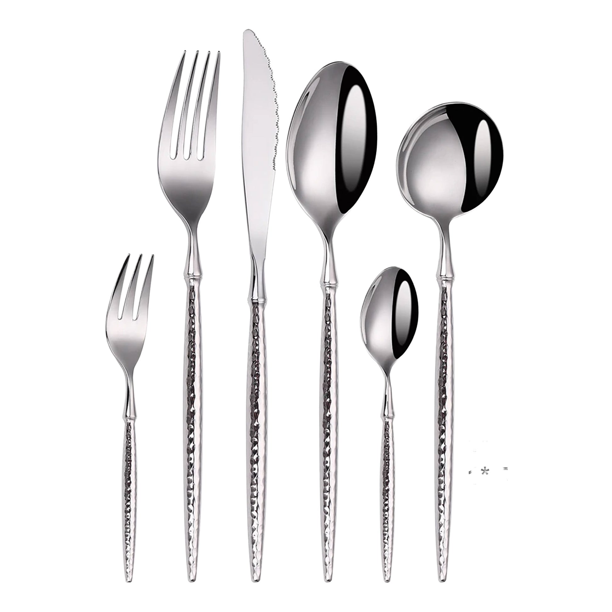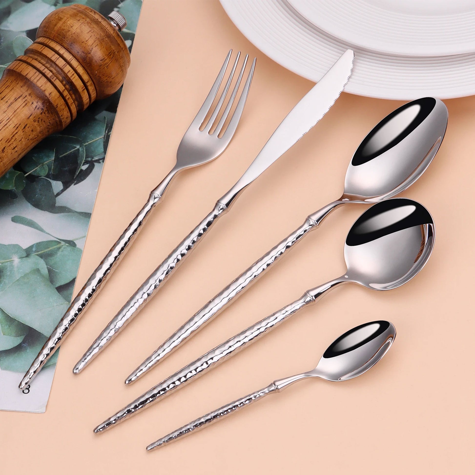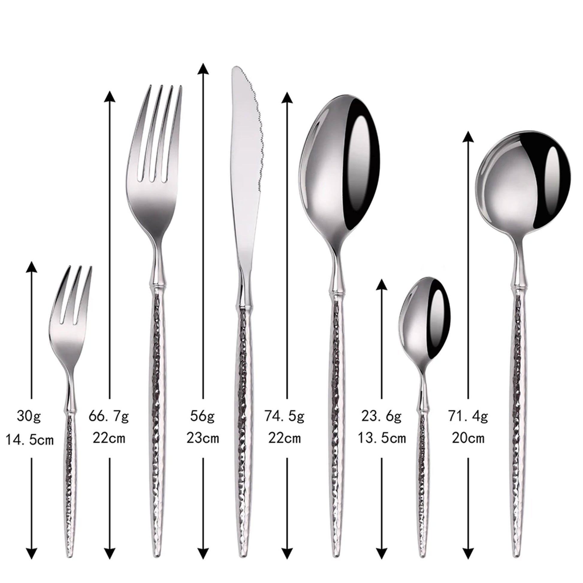 The hammered texture on the handles is the hallmark of this set. Not only does it create a sophisticated, artistic look, but it also improves grip and reduces slipping during use. This design detail makes the cutlery both practical and decorative, enhancing the overall presentation of your tableware.