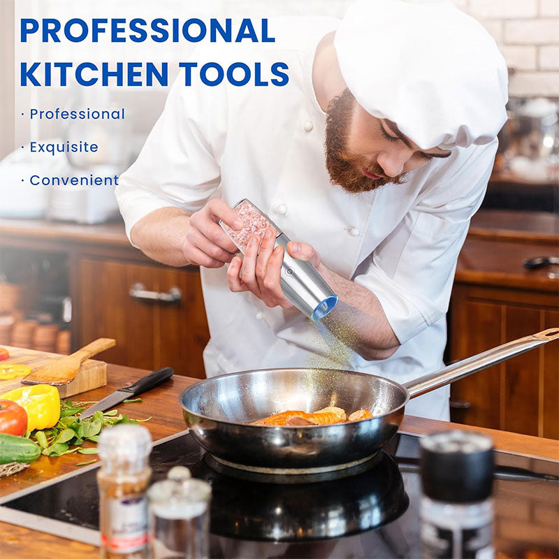 The Gravity Electric Salt & Pepper Mill is an innovative, hands-free seasoning tool designed for effortless use. Simply tilt the mill, and it automatically grinds your spices—no buttons or manual twisting required. Its adjustable ceramic grinder lets you choose from fine to coarse textures, while the built-in LED light provides precise seasoning on any dish. With a clear spice chamber and a sleek, durable body, this grinder is perfect for salt, pepper, herbs, and spice blends. Convenient, modern, and easy to use, it delivers fresh flavor with every tilt.