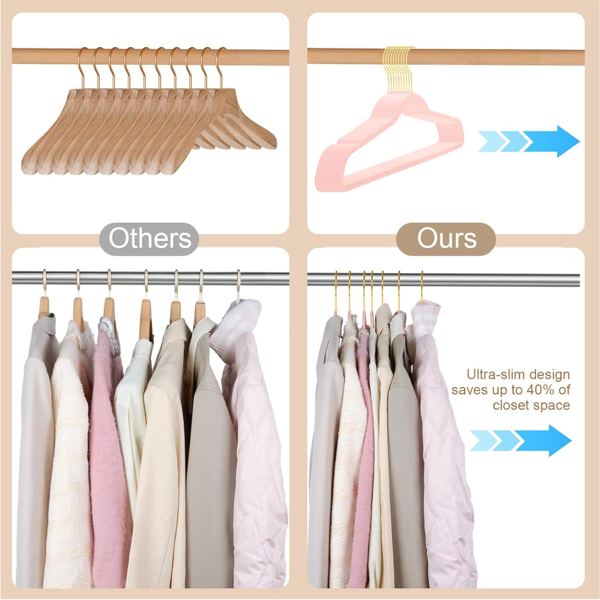Featuring a flocking anti-slip surface, these hangers prevent clothes from sliding off or getting creased. The soft, textured coating ensures your garments stay securely in place, even when made from smooth fabrics like silk, satin, or chiffon. Each hanger’s gently curved shoulders help preserve the natural shape of your clothes, preventing stretching or misshaping over time. Whether hanging delicate blouses, dress shirts, or heavy coats, your garments remain neatly aligned and free from wrinkles.