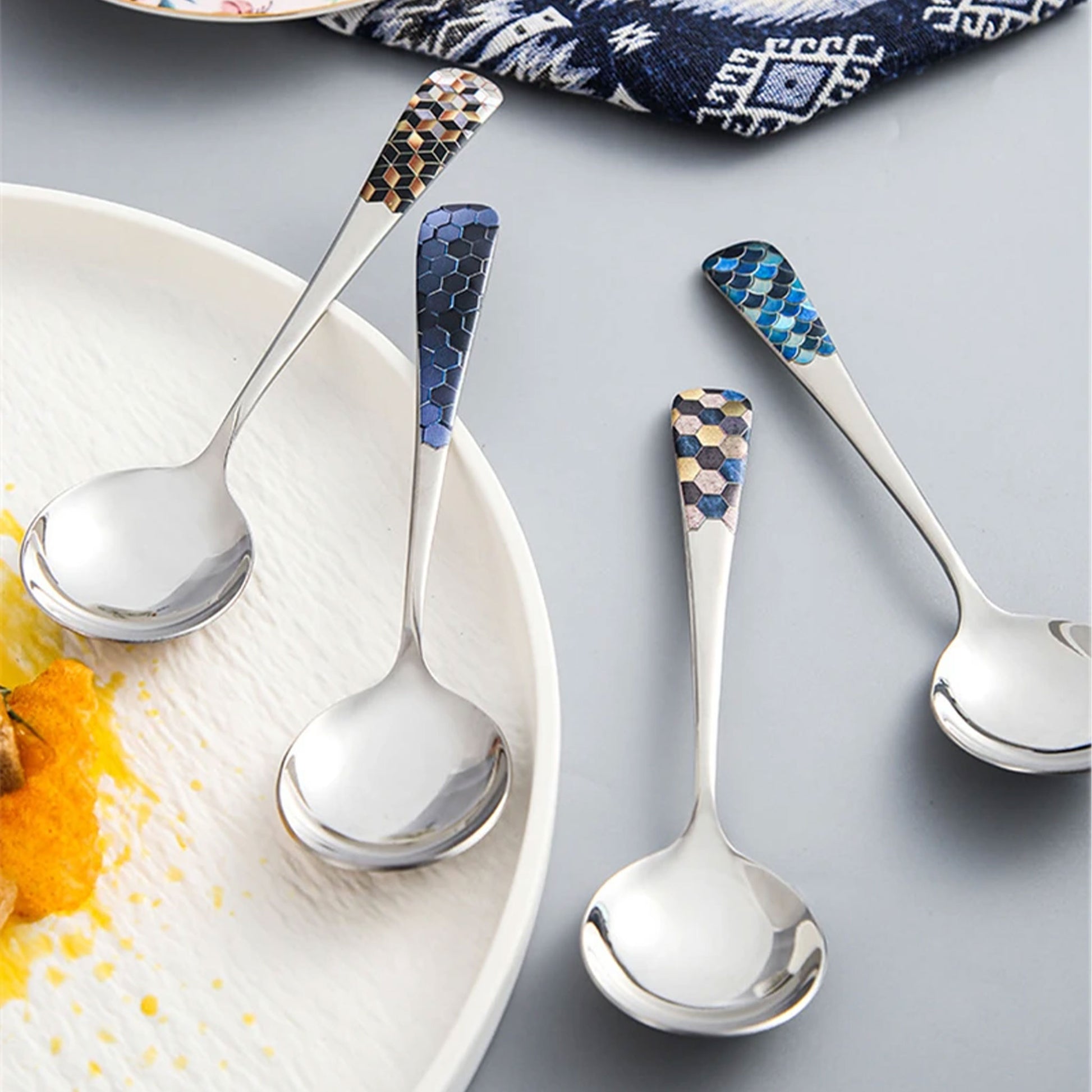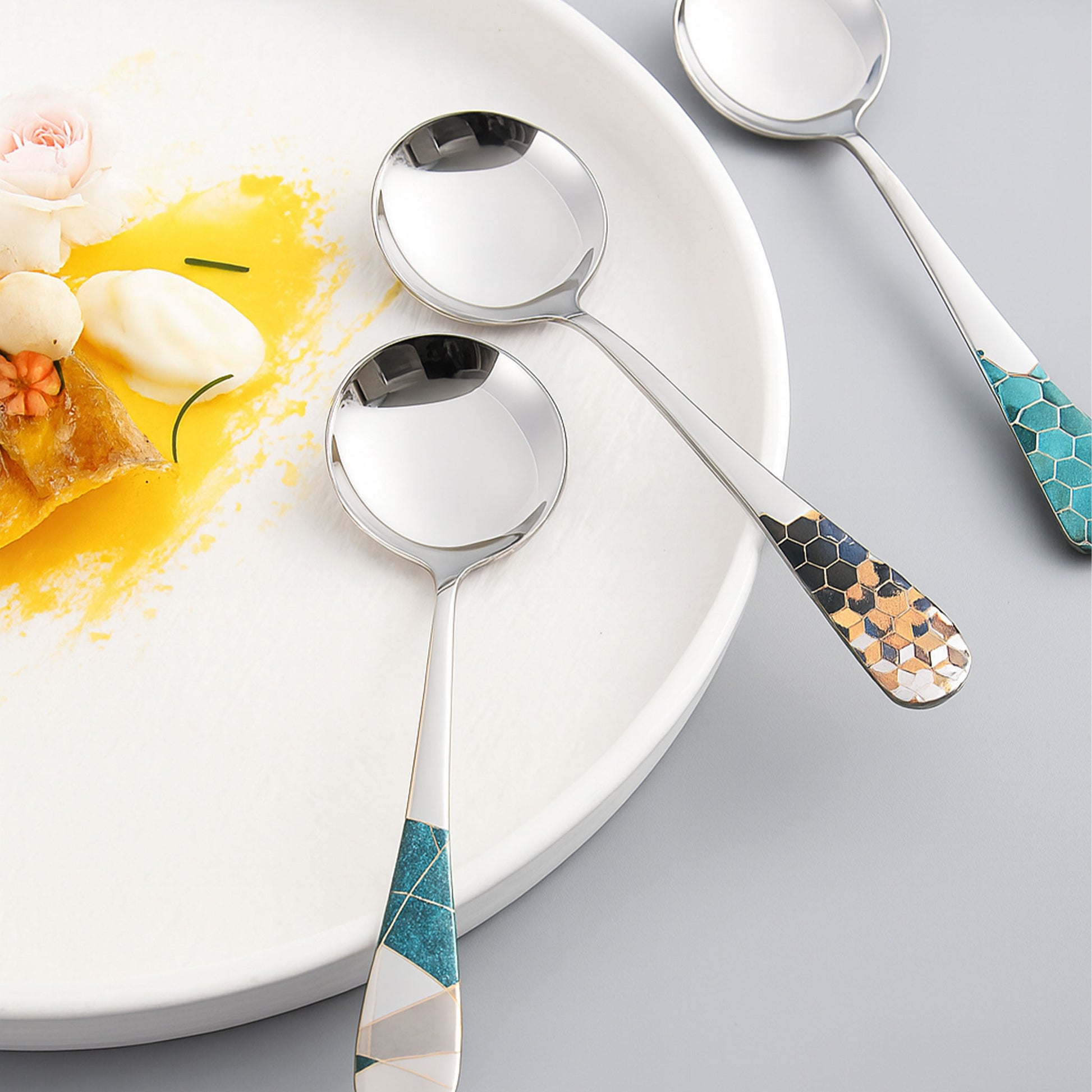 The smooth handle is thoughtfully designed to fit comfortably in the hand, allowing for a relaxed grip. The weight of each spoon is perfectly balanced—not too heavy, not too light—offering control and stability during use. This makes them enjoyable for both adults and children, while maintaining a sense of sophistication for every dining occasion.