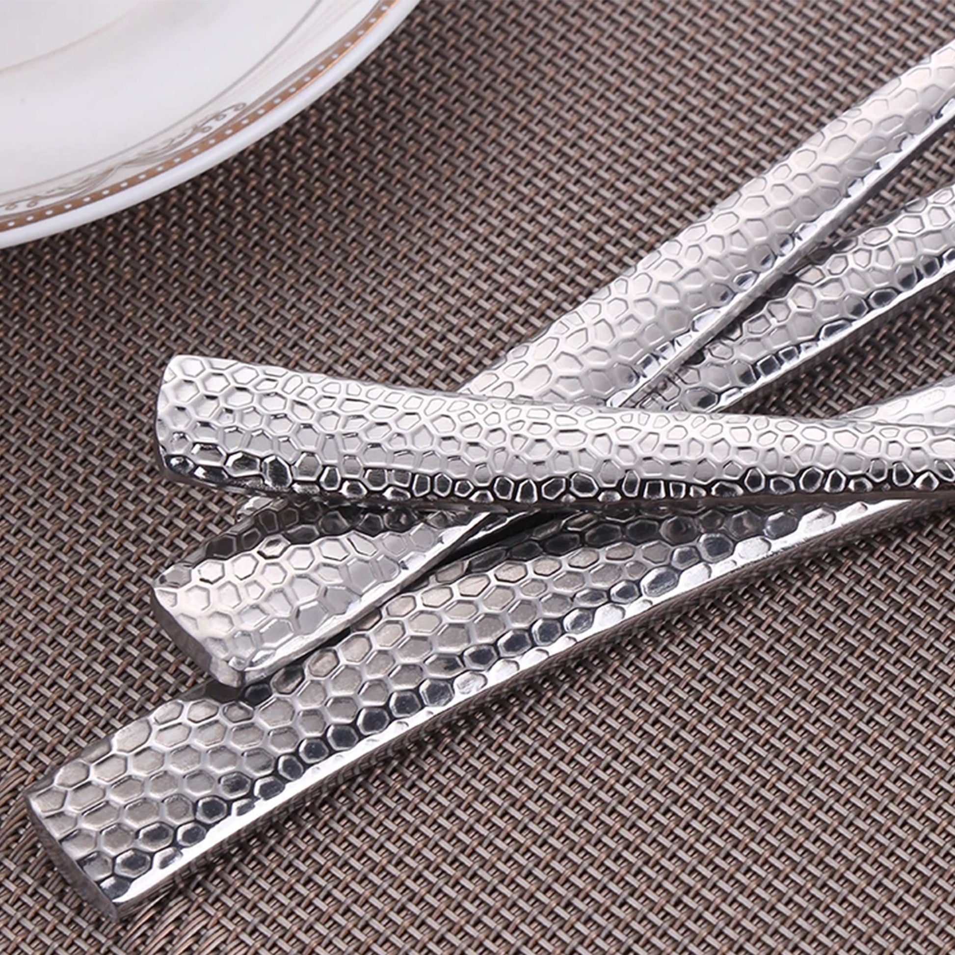 The hammered pattern on the handle is not just decorative—it also provides a comfortable, non-slip grip. This unique texture reflects light beautifully, giving the utensils a refined look that sets them apart from ordinary flatware. The hammered handles add modern artistry while retaining timeless charm.