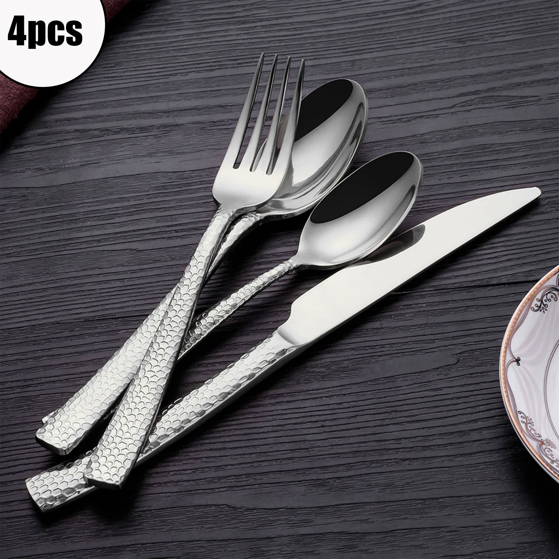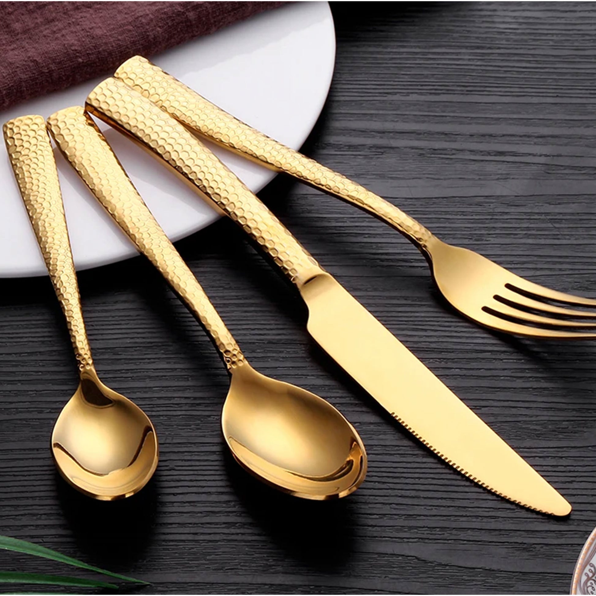 Stainless Steel Gold Cutlery Set with Hammered Handle – 4/8/12pcs