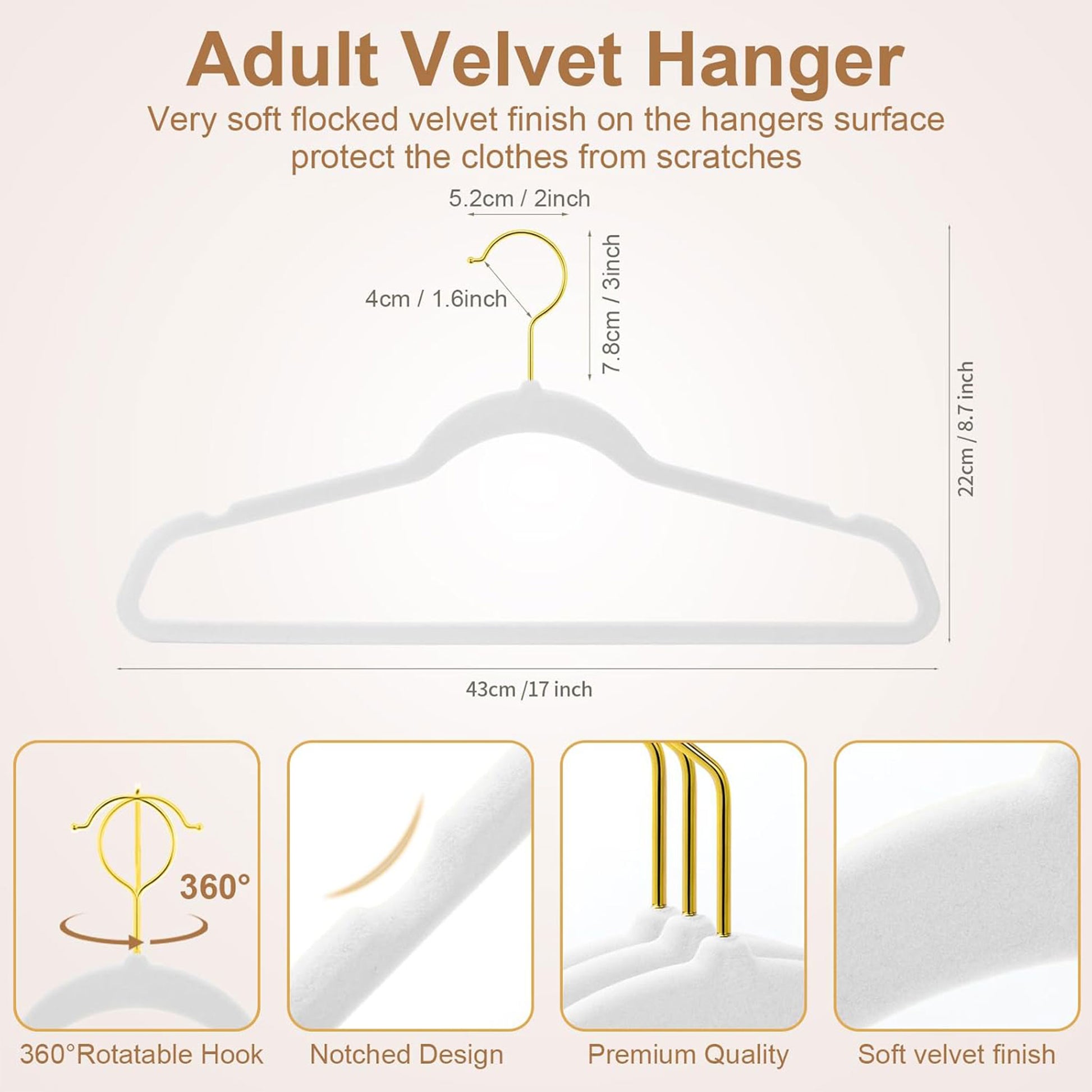 Each hanger is coated with a soft, high-quality velvet flocking that gently grips clothing and prevents slipping. Unlike plastic or metal hangers, velvet hangers securely hold silky, lightweight, and structured garments without causing fabric damage or shoulder marks. The plush velvet protects delicate items like dresses, camisoles, blouses, and formal wear, preserving their original condition.