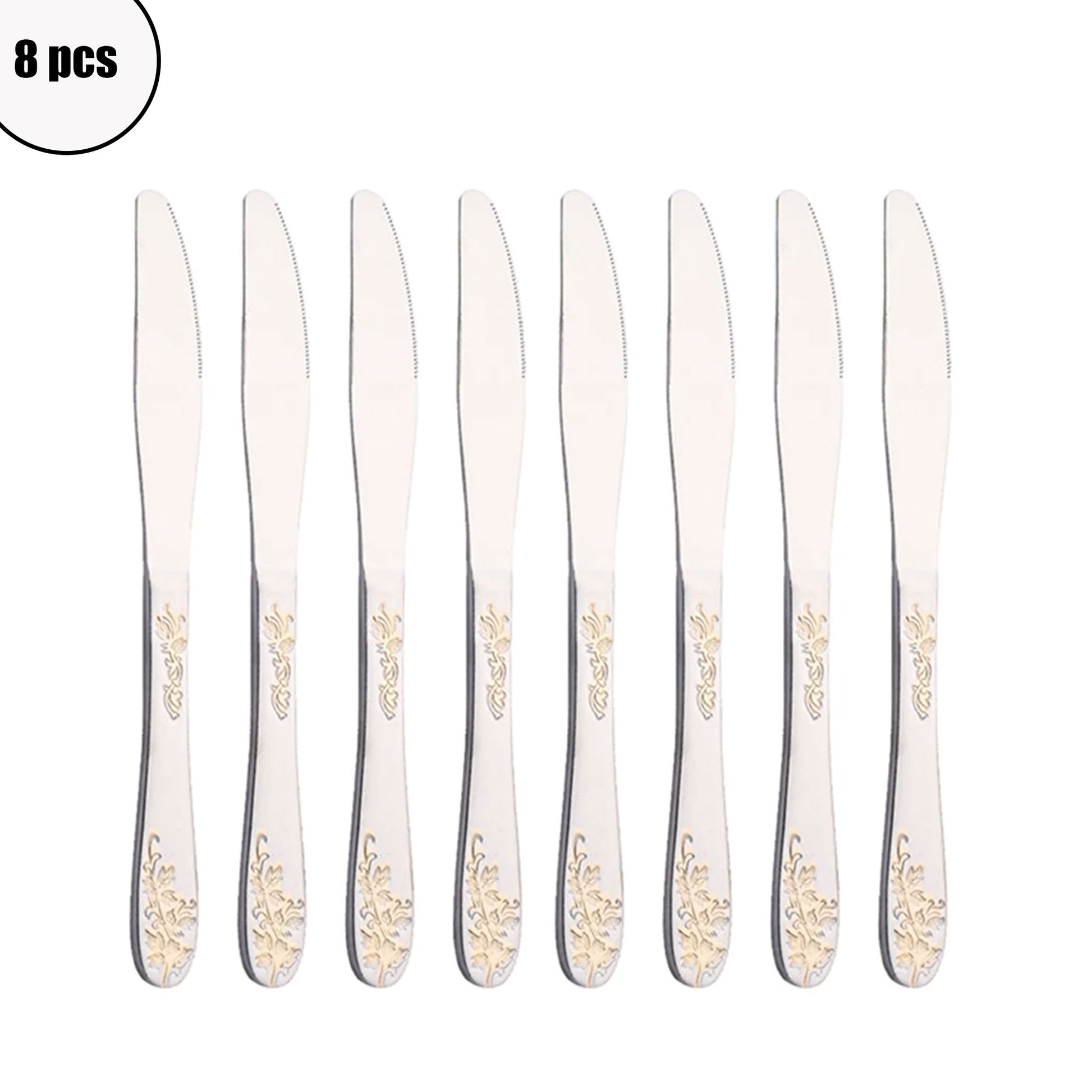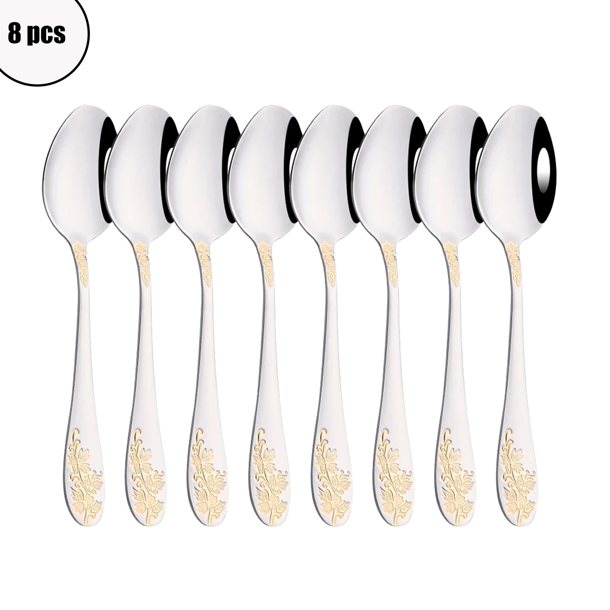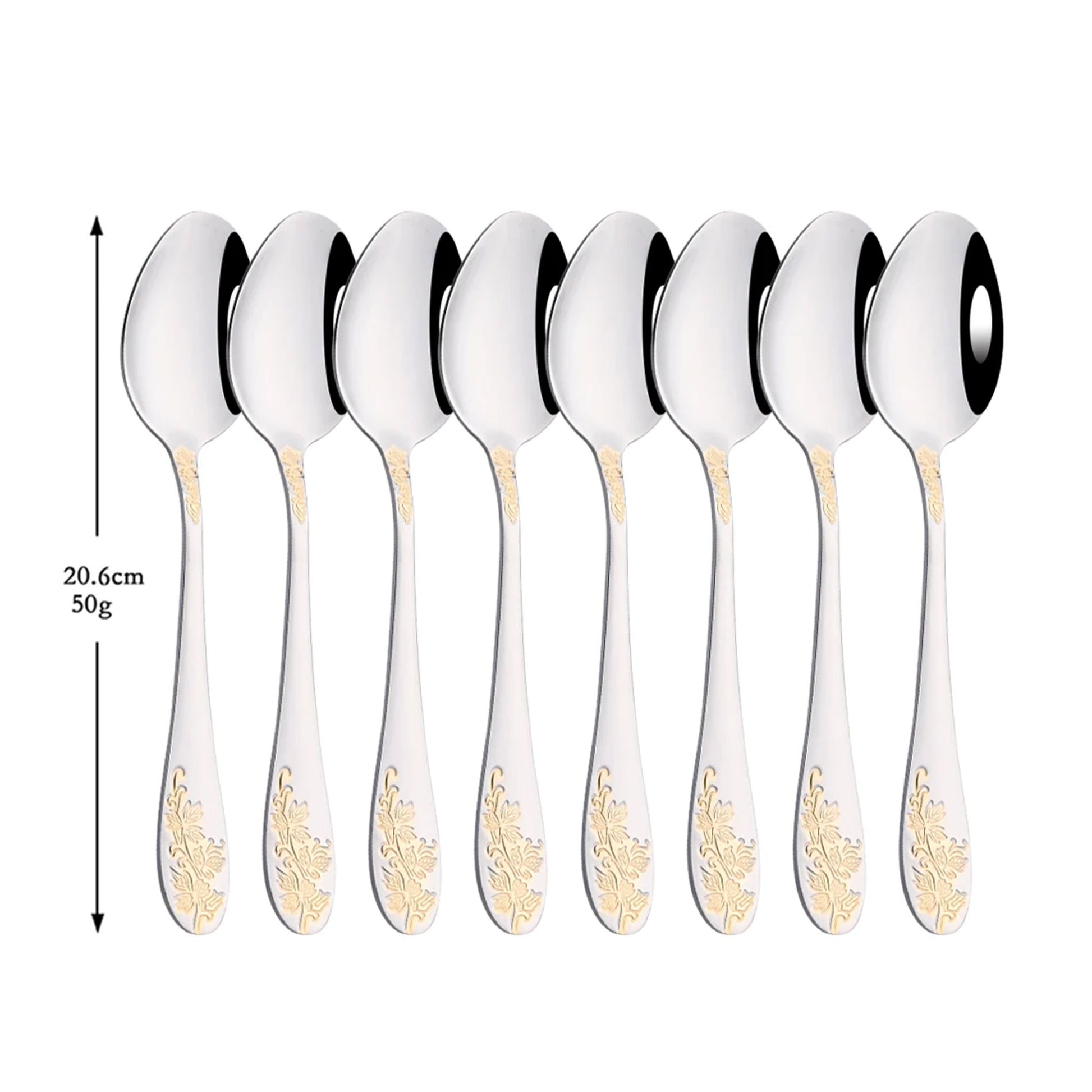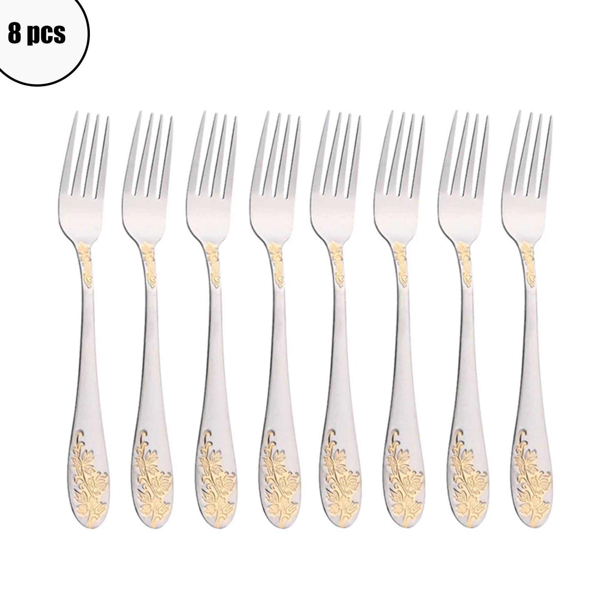 8pcs Set – Ideal for couples or small families, includes dinner forks, knives, spoons, and teaspoons.