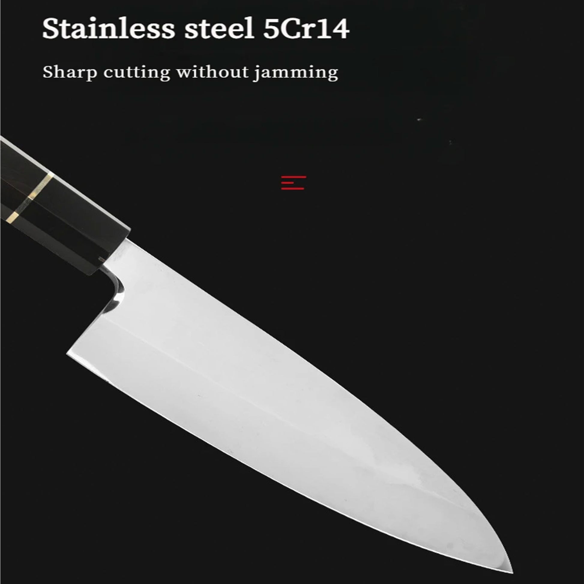 Forged from premium stainless steel, the blade offers exceptional sharpness, corrosion resistance, and long-term edge retention. The high-carbon composition ensures durability and strength while maintaining a lightweight feel for ease of handling. The mirror-polished finish enhances food release, making each cut seamless and effortless. Ideal for both home kitchens and professional sushi chefs, this knife provides reliable precision that lasts.