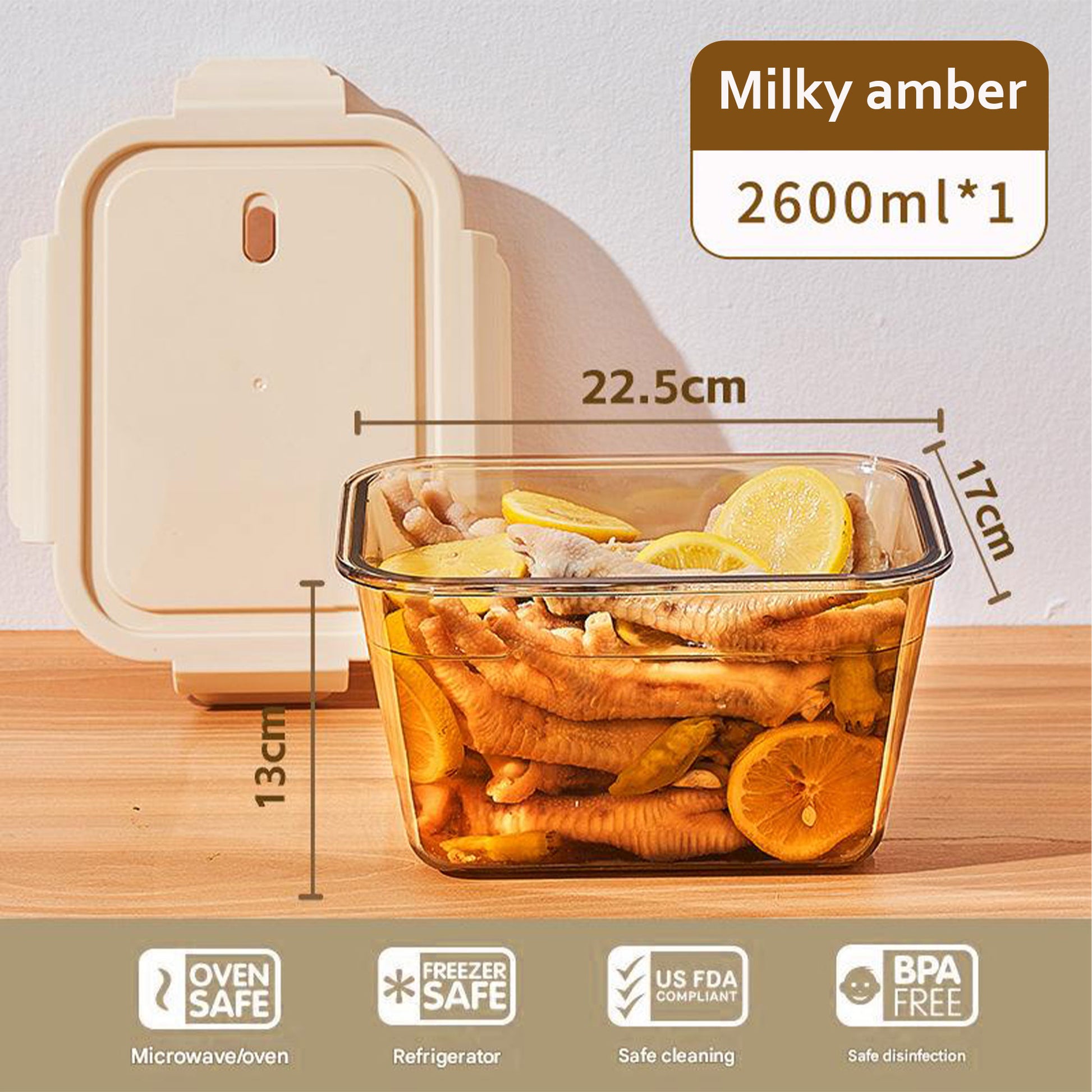 The Sealed Glass Refrigerator Storage Box is designed to keep your food fresh, organized, and protected inside the fridge. Made from high-quality, thickened borosilicate glass, it delivers superior durability, clarity, and safety for everyday kitchen use. It's airtight, leak-proof silicone sealing lid locks in freshness and prevents spills, making it ideal for storing leftovers, meal prep portions, fruits, vegetables, sauces, and baked items. The transparent design allows you to easily identify contents without opening the lid, helping maintain better hygiene and reduce food waste. This storage box is resistant to high and low temperatures, allowing you to use it safely in the refrigerator, freezer, microwave, and even oven without the lid. Easy to clean, odor-resistant, stain-free, and reusable, it is an eco-friendly alternative to disposable containers. Its stackable shape saves space, making it perfect for organized refrigerator storage and modern kitchens.
