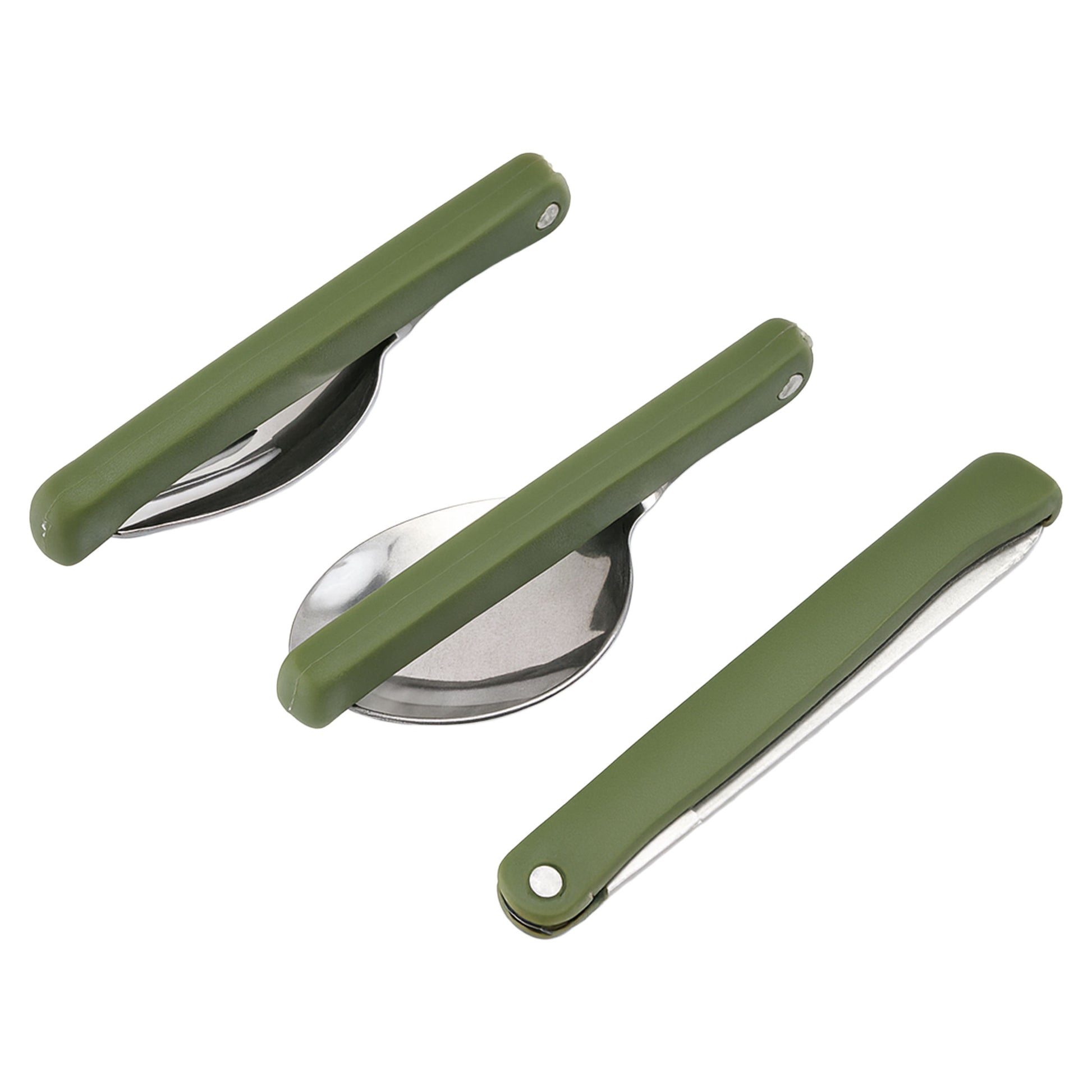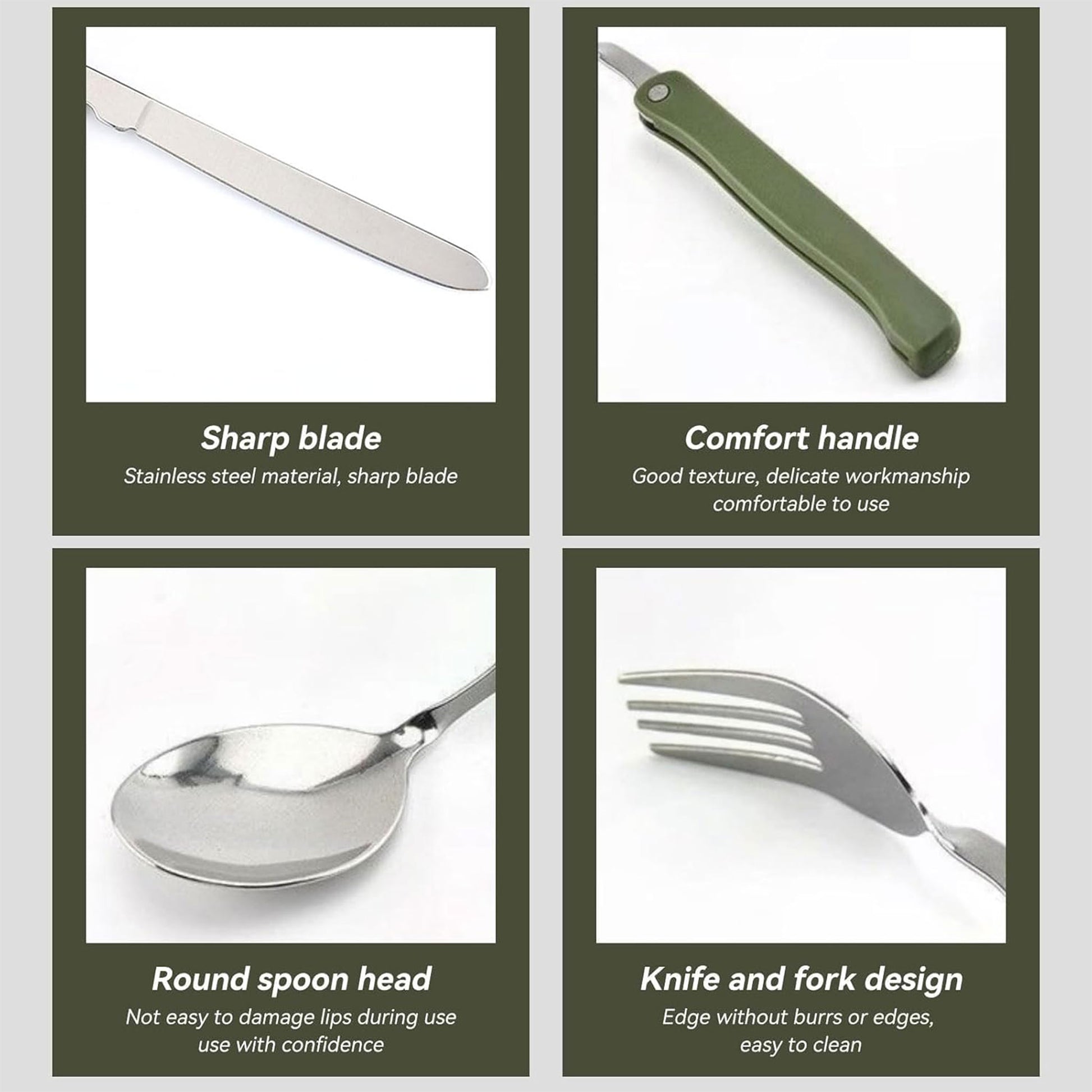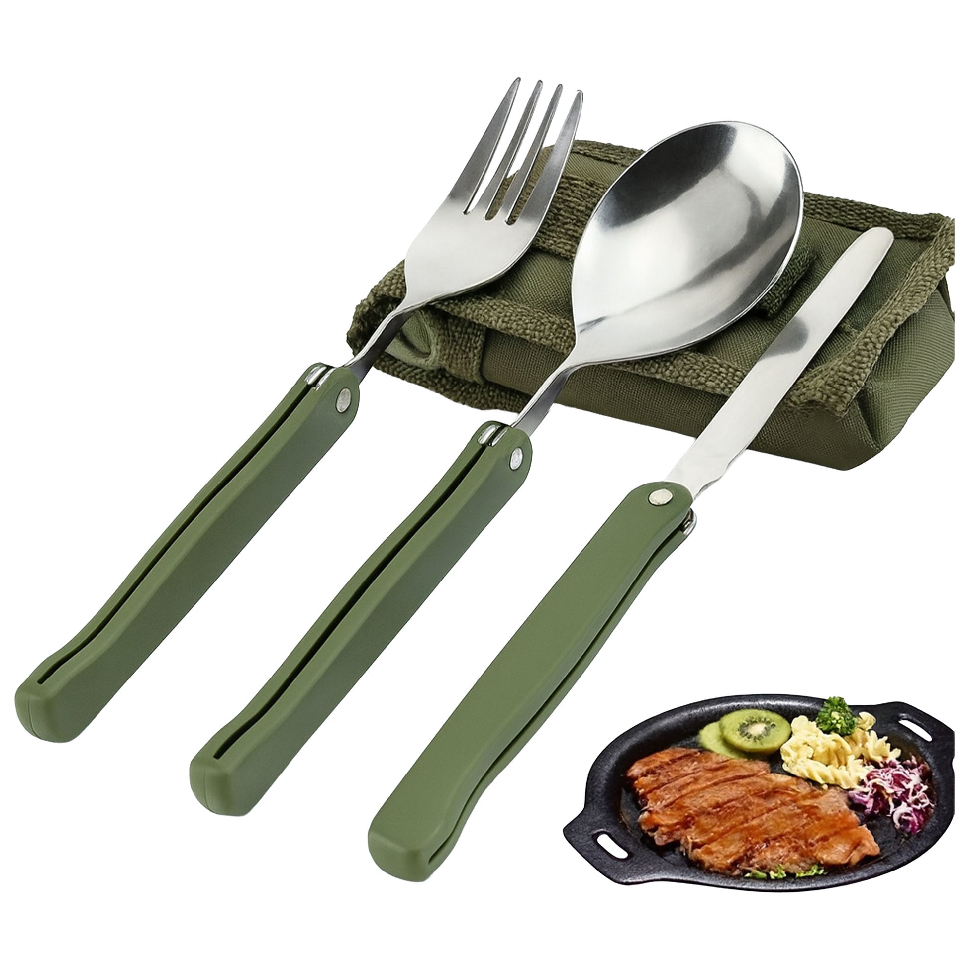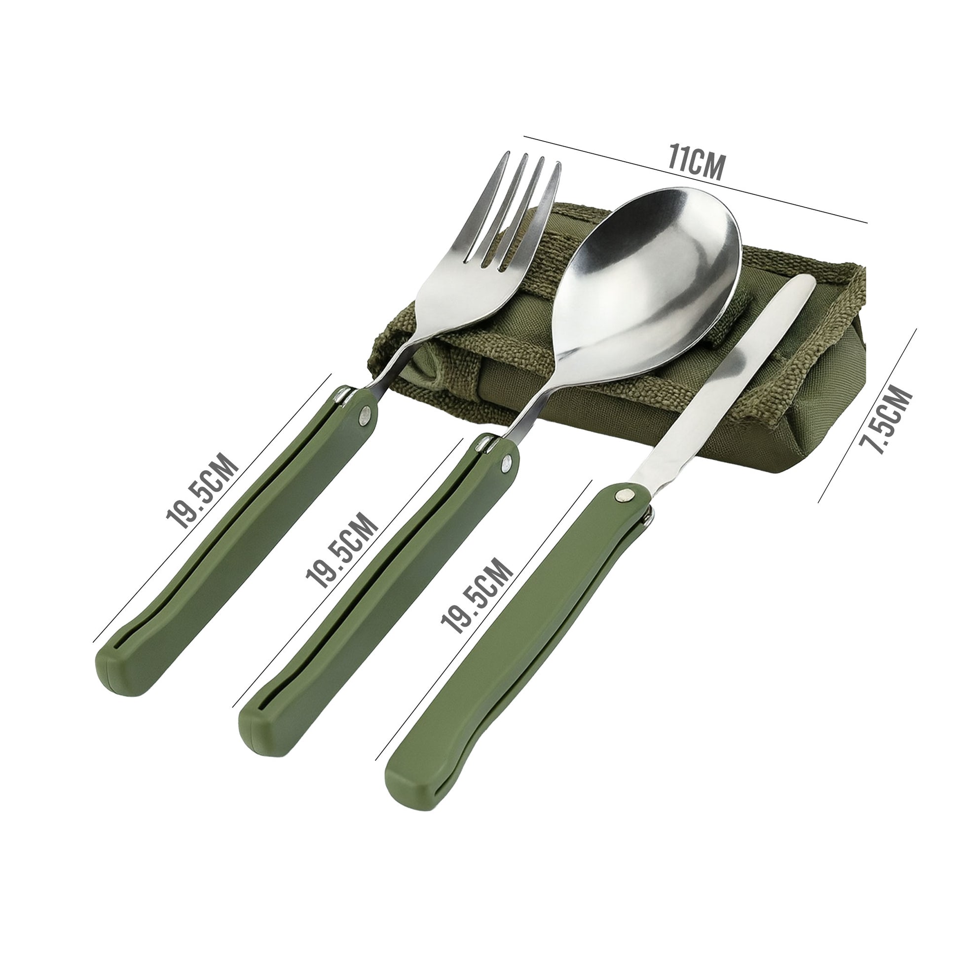 Stainless Steel Folding Camping Cutlery Set with Green Pouch