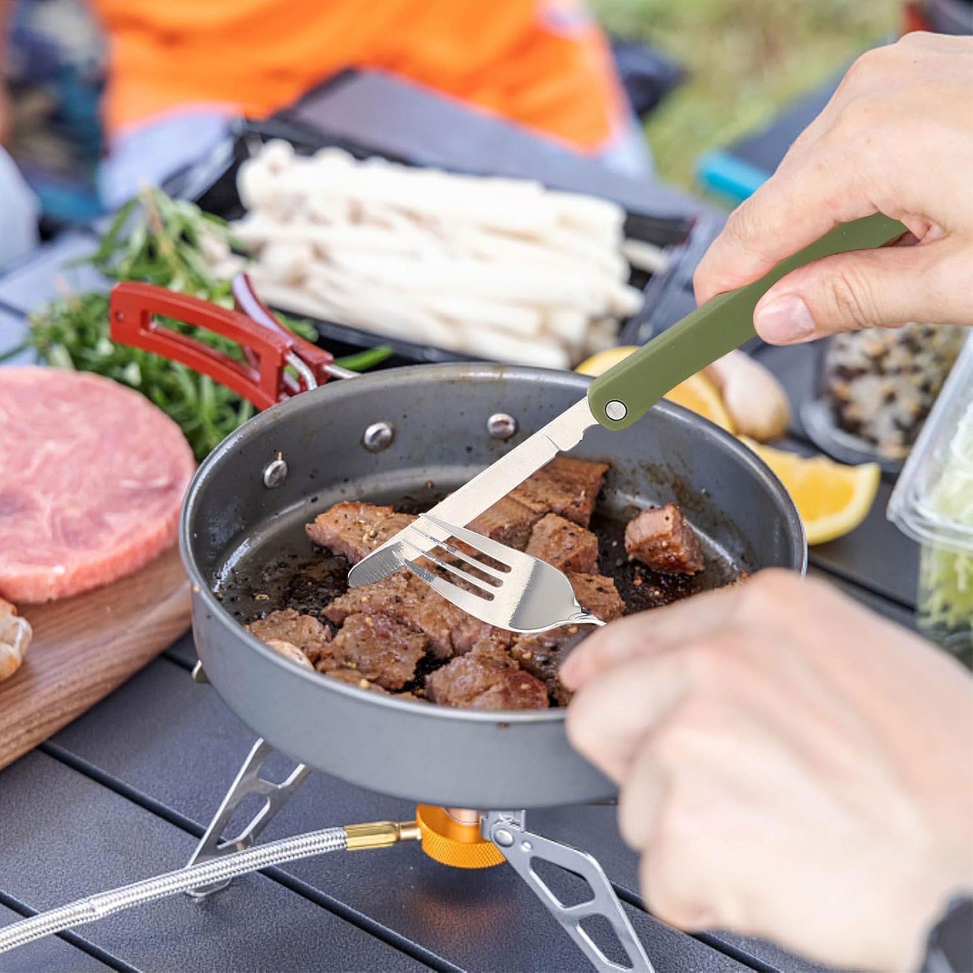 Crafted from high-quality stainless steel, the cutlery set includes a folding knife, fork, and spoon. Each piece is built to resist rust, corrosion, and daily wear, making it long-lasting even in harsh outdoor environments. The polished finish ensures the utensils are smooth and easy to clean, while the sturdy construction allows them to handle everything from slicing grilled meat to scooping hearty stews. Unlike disposable cutlery, this eco-friendly alternative offers strength and reusability, reducing waste while providing a premium dining experience outdoors.